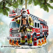 Custom Name Santa Fireman Ornament, Firefighter Ornament Christmas Decoration