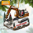 Snowy Excavator Christmas Ornament Personalized