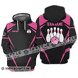 Unisex Shirt - Custom Name And Team Name Shirt, Black Pink Bowling Shirt