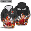 Unisex Shirt - Custom Name And Team Fire Bowling Ball Pins Zipper Hoodie / S T-Shirt