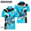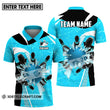 Unisex Shirt - Custom Name And Team Light Blue Pieces Bowling Zipper Polo / S T-Shirt