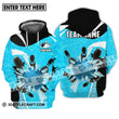 Unisex Shirt - Custom Name And Team Light Blue Pieces Bowling Zipper Hoodie / S T-Shirt